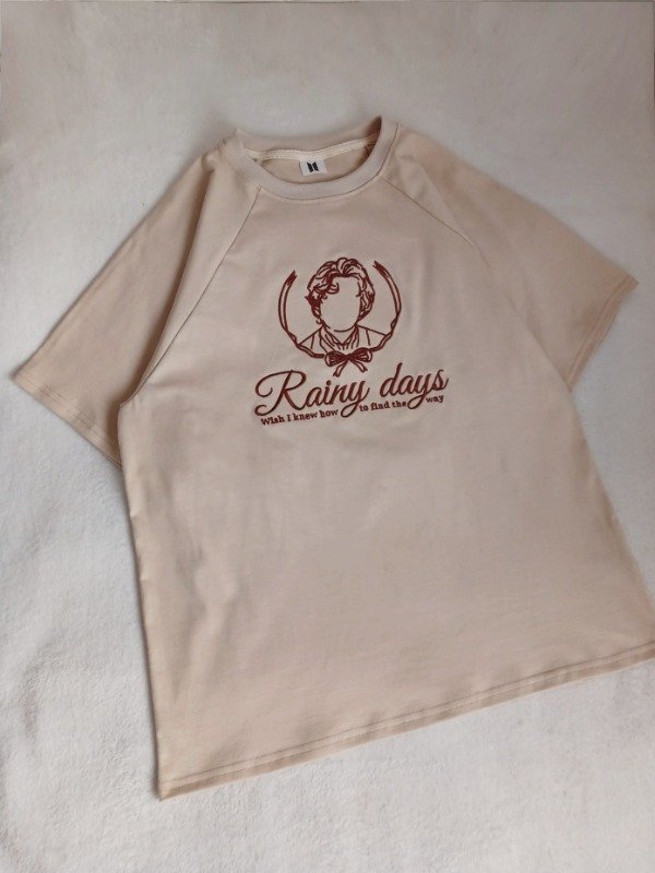 Remeron corte oversize y mangas rangla con un bordado delantero.